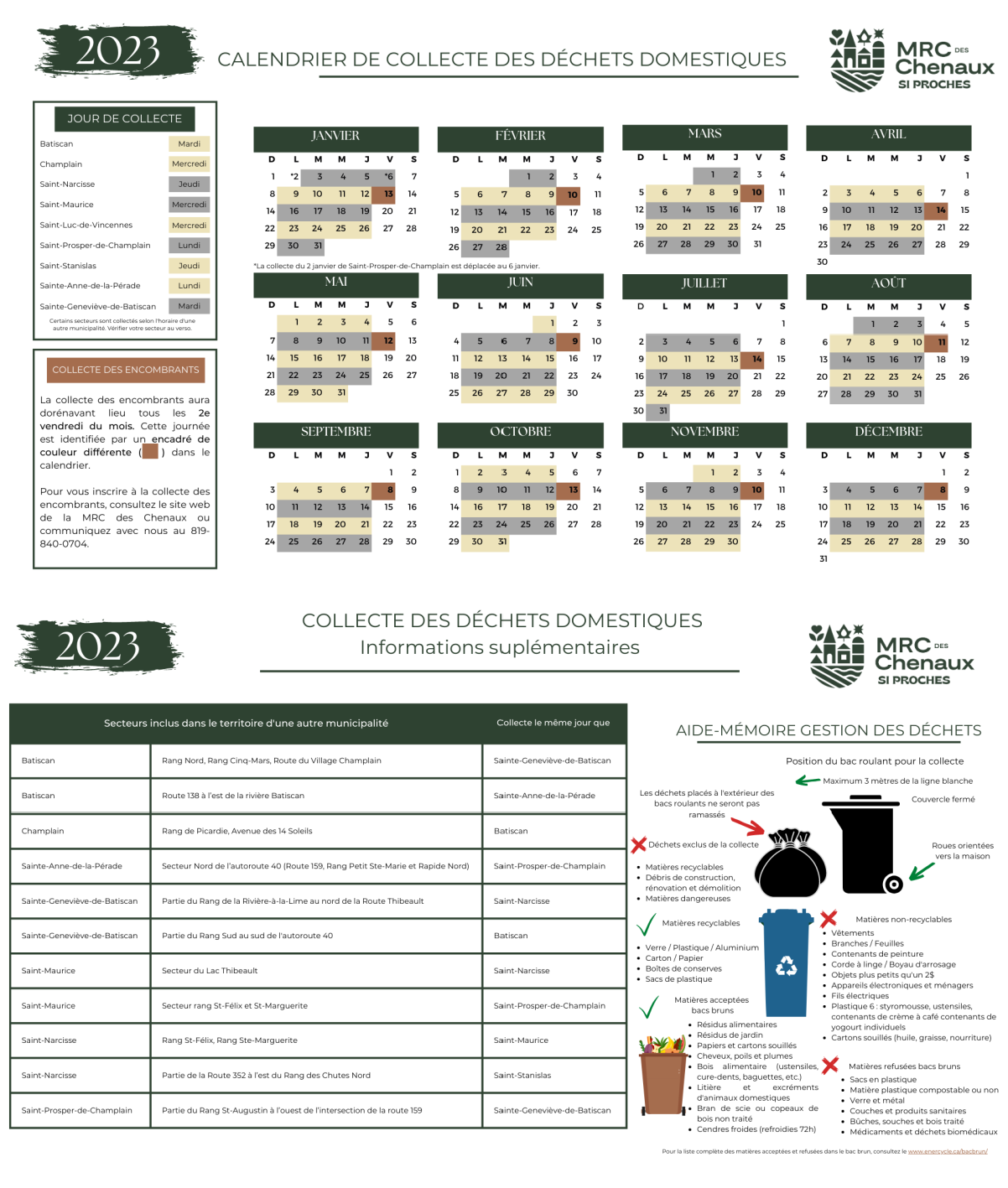 Calendrier de collecte des déchets 2023